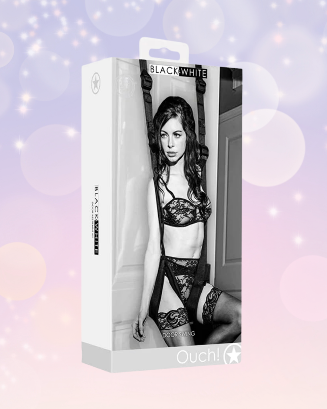 Door Swing Explore a variety of new positions with an ordinary door. Just place the 2 acrylic tubes over the top of any open door, close the door and lock for safety. Help your lover slide their thighs through the loops and arms through the upper loops. Use the handles for extra safety. No permanent installation needed. Holds up to 300kg/661lbs. Adjust to a comfortable height and get ready for the time of you life. Comes with 2 acrylic door jam tubes, padded thigh supports, and a free satin eye mask. Product Features: Package Dimensions: 33.3cm x 17.2cm x 8.4cm Package Weight: 595 grams Product Weight: 350 grams Materials: Polyester, Plastic, Metal, Webbing, SBR Mask Weight: 6 grams Dimensions: 18.5cm x 8.8cm x 0.1cm Ropes Weight: 345 grams