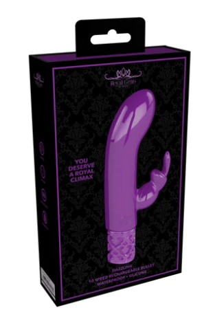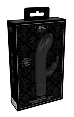 Dazzling - Rechargeable Silicone Bullet - Black & Purple You don’t need to be royalty to enjoy this elegant line. Hidden beneath it’s silky-smooth medical grade silicone exterior lies a pedigree unmatched. DAZZLING is the miniature version of the classic rabbit. But don’t let its size fool you, as it is more than capable to get the job done. The magnetic fully rechargeable proprietary New Generation F-1 motor design delivers mind blowing vibrations uniformly across the full surface of the toy. Don’t settle for the common, choose to be royal. PRODUCT SPECIFICATION: Package Dimensions: 10cm x 3.4cm x 16.5cm Package Weight: 193 grams Product Dimensions: 12cm x 4cm Product Weight: 64 grams Product Diameter: 2.5cm 10 Speed Modes Rechargeable Waterproof Splashproof Phthalate Free Materiels: Silicone