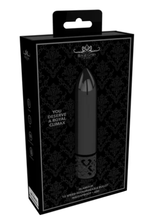 Glamour - Rechargeable ABS Bullet - Purple & Black You don’t need to be royalty to enjoy this elegant line. The sleek metal finish makes this vibrator the crown jewel of any collection. GLAMOUR is small but powerful classic bullet design. The magnetic fully rechargeable proprietary New Generation F-1 motor design delivers mind blowing vibrations uniformly across the full surface of the toy. Don’t settle for the common, choose to be royal. PRODUCT SPECIFICATION: Package Dimensions: 10cm x 3.4cm x 16.5cm Package Weight: 168 grams Product Dimensions: 10.6cm x 3.4cm Product Weight: 39 grams Product Diameter: 2.3cm 10 Speed Modes Rechargeable Waterproof Splashproof Phthalate Free Materiels: ABS