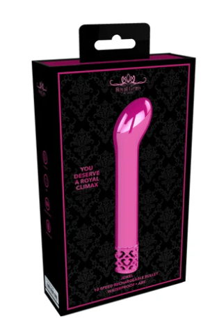 Jewel - Rechargeable ABS Bullet - Pink & Black You don’t need to be royalty to enjoy this elegant line. The sleek metal finish makes this vibrator the crown jewel of any collection. The curved tip on the JEWEL is perfect for internal or external pleasures. The magnetic fully rechargeable proprietary New Generation F-1 motor design delivers mind blowing vibrations uniformly across the full surface of the toy. Don’t settle for the common, choose to be royal PRODUCT SPECIFICATION: Package Dimensions: 10cm x 3.4cm x 16.5cm Package Weight: 167 grams Product Dimensions: 12cm x 2.5cm Product Weight: 33 grams Product Diameter: 1.8cm 10 Speed Modes Rechargeable Waterproof Splashproof Phthalate Free Materiels: ABS
